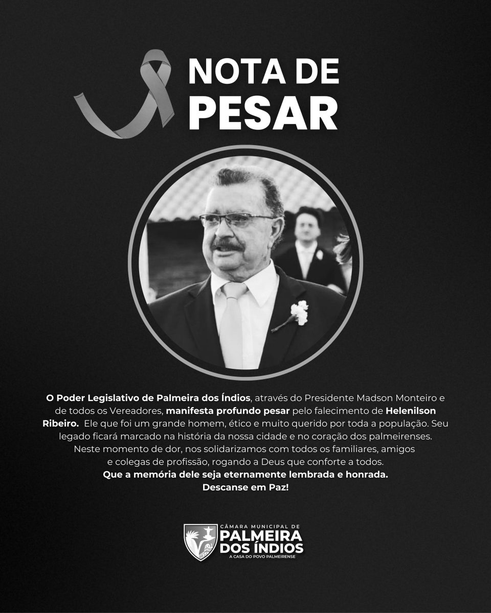 Em nota oficial, o Legislativo Municipal lamentou profundamente a perda e destacou o legado deixado por Elenilson na sociedade palmeirense. “Neste momento de dor, nos solidarizamos com os familiares e amigos, pedindo a Deus que conforte seus corações”, diz o comunicado.