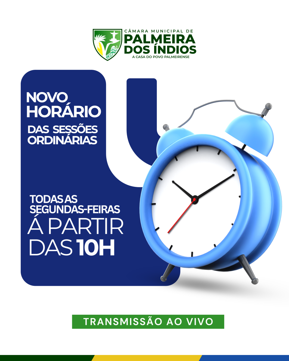 A Câmara Municipal de Palmeira dos Índios anunciou uma mudança importante no calendário de sessões ordinárias. A partir da próxima semana, os encontros que antes aconteciam às quartas-feiras, no período da noite, passarão a ser realizados todas as segundas-feiras, às 10h da manhã.